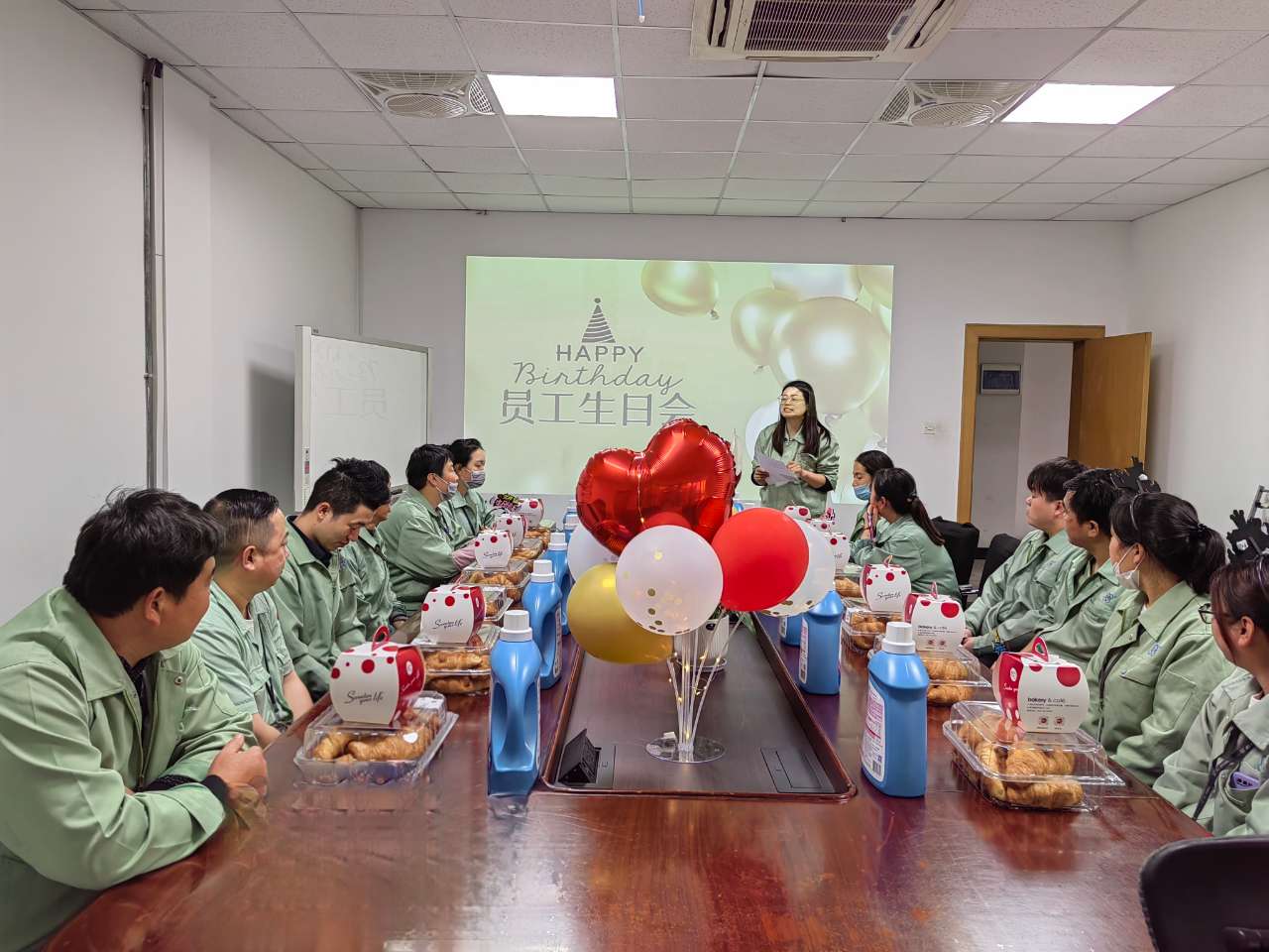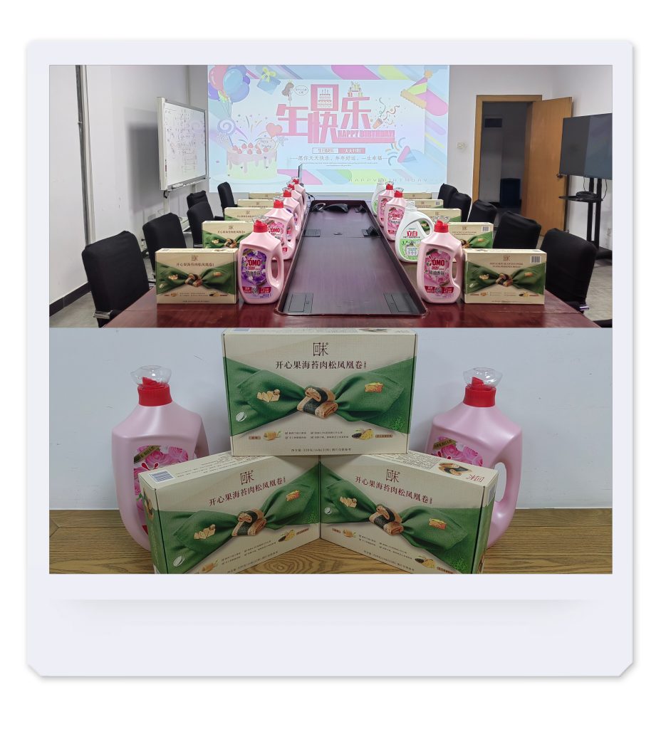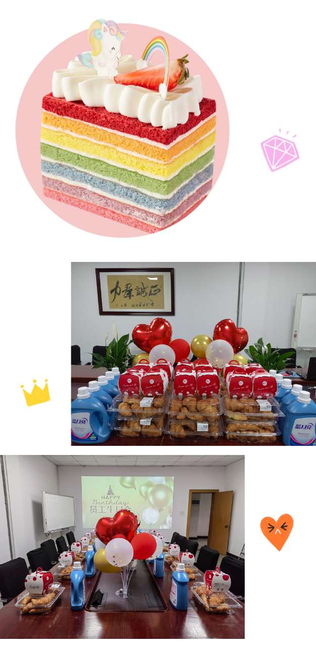 每次員工生日會,都傾注了公司對所有員工的關(guān)心、關(guān)懷。精心準(zhǔn)備、特意挑選的美食、禮物,質(zhì)樸卻充滿愛心,濃濃的幸福感!